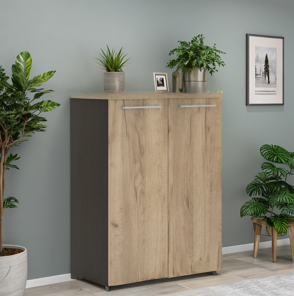 خزانة مدمجة ومتعددة الاستخدامات من مجموعة ALTO تُعد الحل الأمثل للتخزين في المكتب أو في الشقة المريحة. تضمن العملية والأناقة بتشطيبها Oak Boford/Wenge Magic.